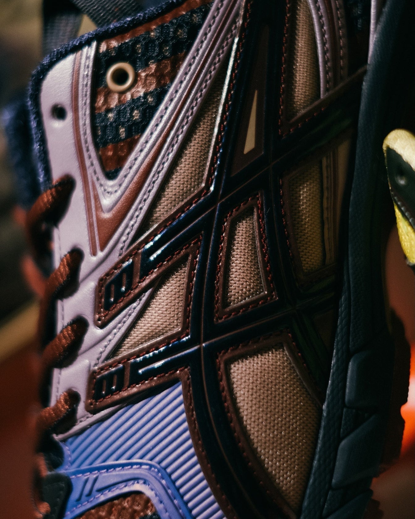 Kiko Kostadinov StudioがASICS SportStyleと手がけるキュレーションプロジェクトの最新作。UB9-S GEL-DS TRAINER 14は、「切り抜き(découpage)」と「自然の模倣物(natural simulacrum)」からデザインのインスピレーションを得ている。自然の痕跡と、風景の中で廃棄され再生された物体の影響をアッパーに反映。鮮やかなカラーとマットなカラーのコントラストは、自然と人間のつながりを表現し、レイヤー素材は化石や岩石を、特徴的なモアレ紋様は日用既製品を象徴している。