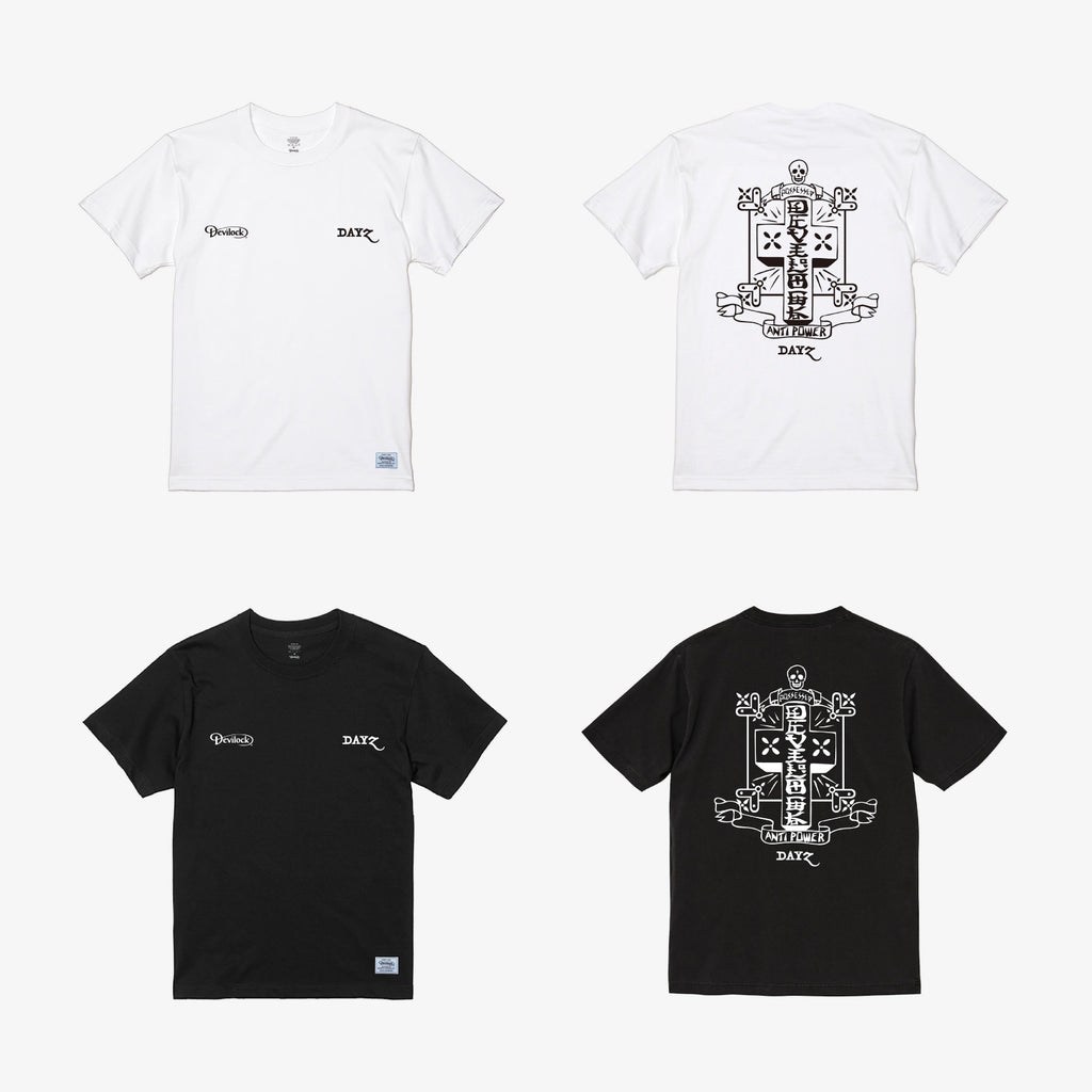 DEVILOCK 29周年を記念したPOP UP開催を記念し、DAYZとのコラボレーションアイテムが登場。フロントはDEVILOCKとDAYZのロゴを胸にプリントされたシンプルなデザインかと思いきや、バックには「DEVILOCK ANTI POWER」デザインが大きく入ったTシャツ。