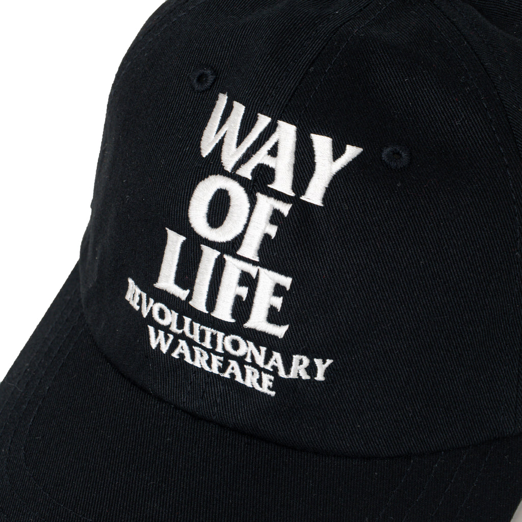 コットン素材、ロークラウン型のダッドキャップ。フロントパネルにWAY OF LIFEロゴ、左側面にRATマンとデッドマンのクロスオーバーした2FACEグラフィックを直刺繍で表現したデザイン。後部中央にバックル付きアジャスターを付属、サイズ調整が可能。1色1サイズ展開。ハードコアバンド<九狼吽 (CROW)>のボーカリストとしても活動するMUNE氏が手掛けるアパレルブランド<GENT>とのコラボレーションモデル。