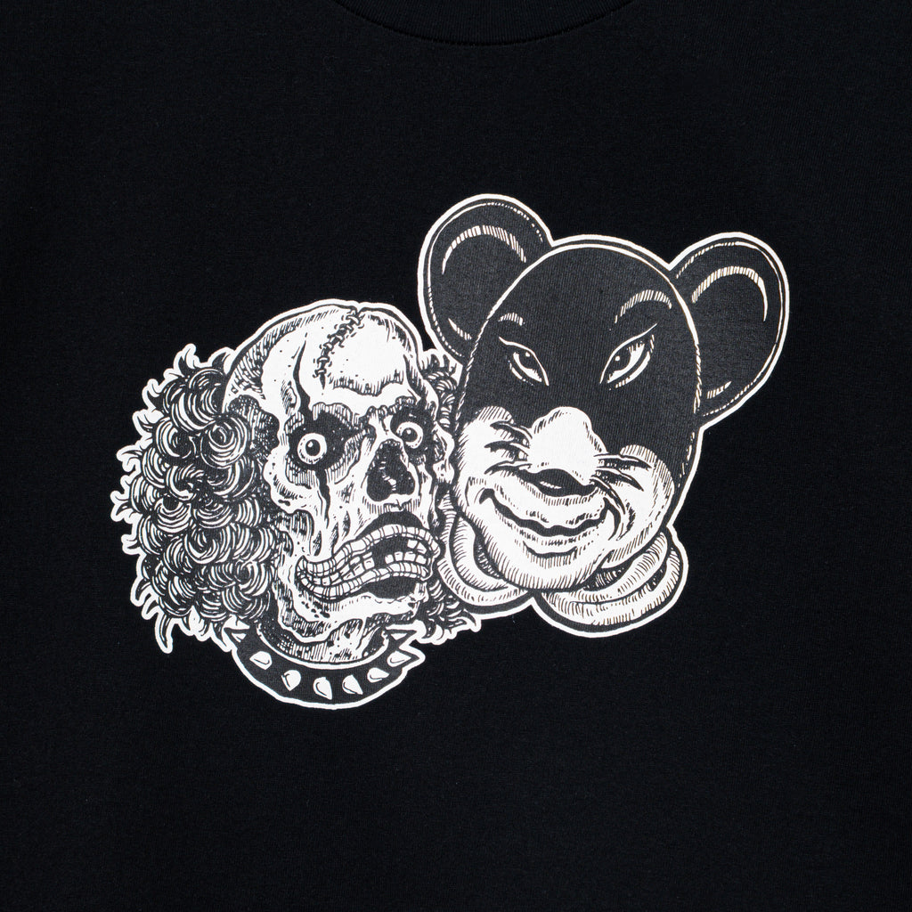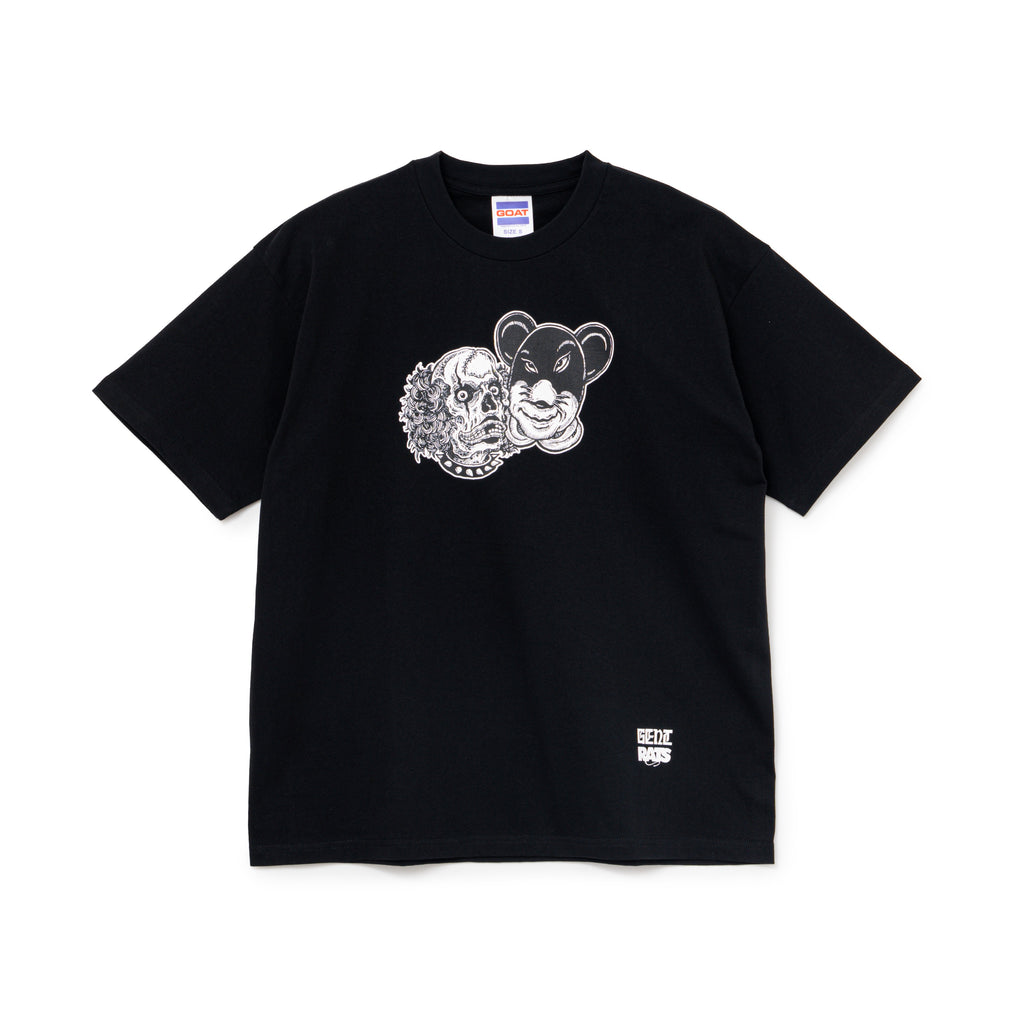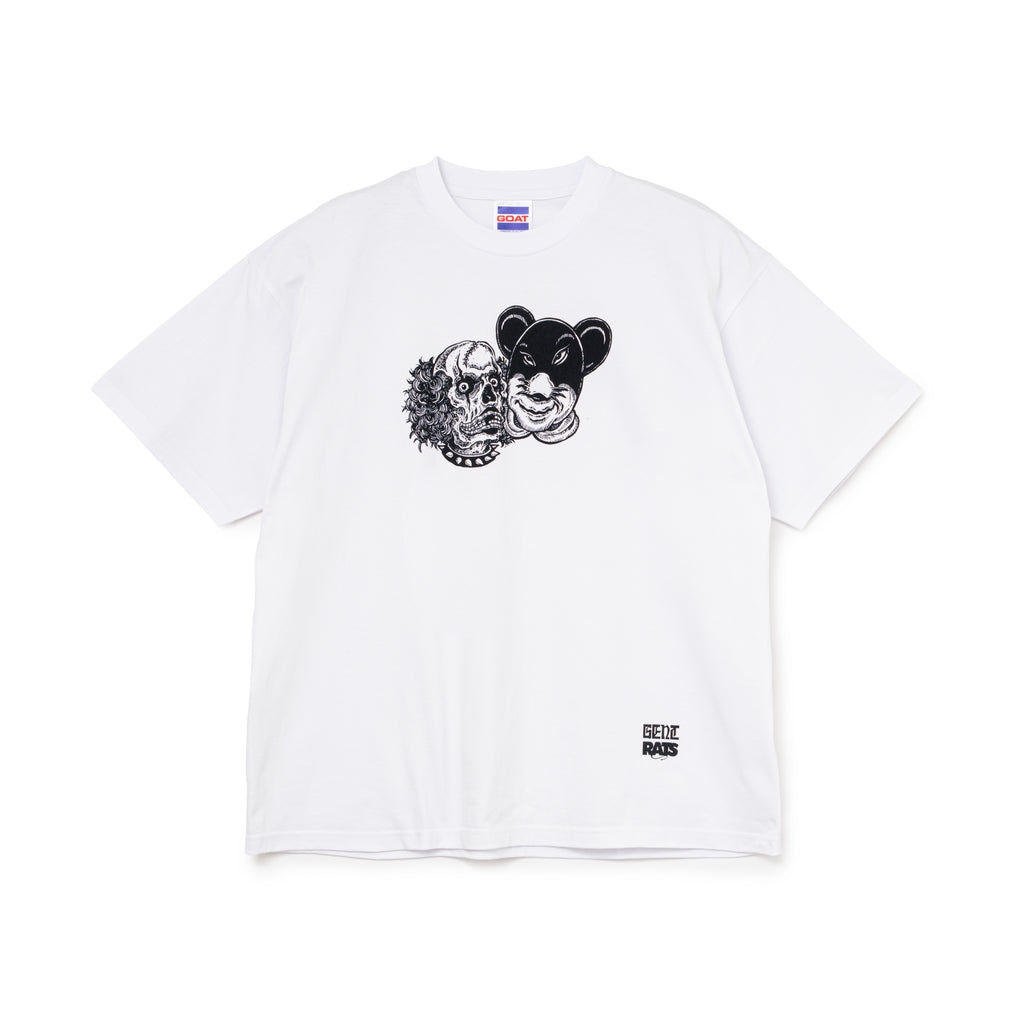7.0oz、ドライタッチなコットン天竺素材を使用したGOAT製ボディのショートスリーブTシャツ。フロントにRATマンとデッドマンのクロスオーバーした2FACEグラフィックをラバープリントで表現したデザイン。背面右脇にRatモチーフのワンポイント刺繍。着丈やや短め、身幅にゆとりのあるシルエット。2色4サイズ展開。ハードコアバンド<九狼吽 (CROW)>のボーカリストとしても活動するMUNE氏が手掛けるアパレルブランド<GENT>とのコラボレーションモデル。