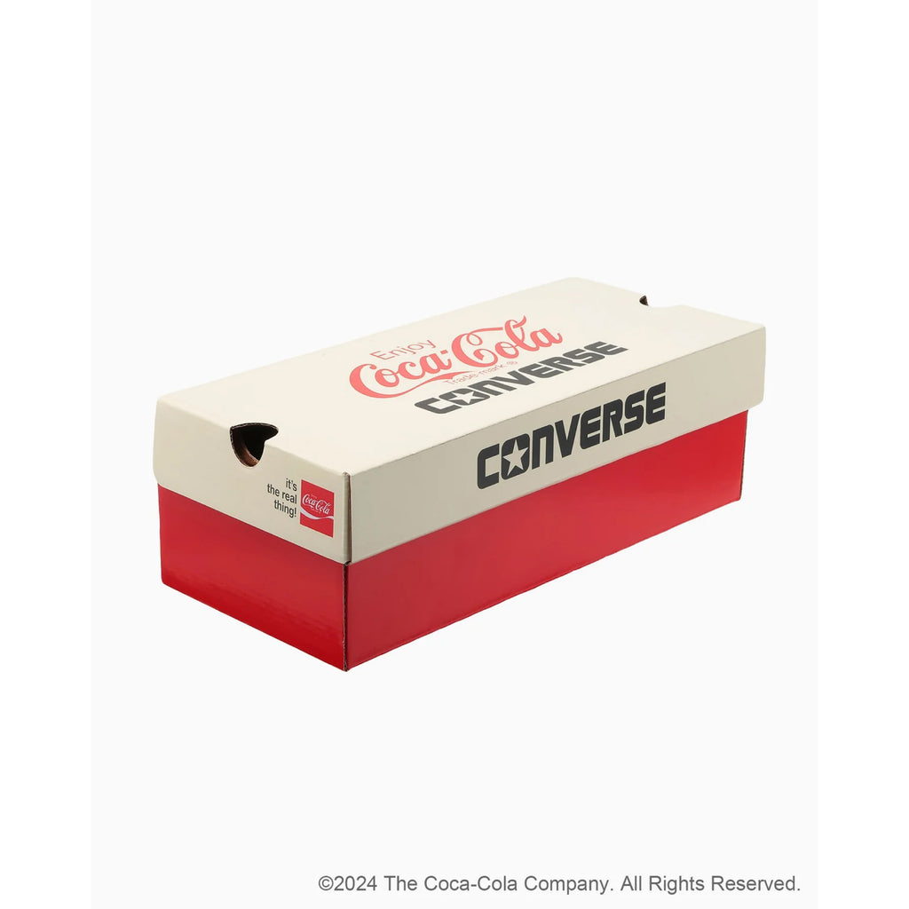 70年代のCoca-Colaのアートワークを総柄デザインにアレンジし、レトロでポップな雰囲気を醸し出しています。Coca-Colaの象徴的なレッド/ホワイトと、ストリートウェアに馴染むブラック/ホワイトの2つのカラーリングを展開。レッド/ホワイトにはCoca-Colaのブランドカラーを反映したレッド、ブラック/ホワイトにはブラックのスペアシューレースが付属。Coca-Colaロゴの入ったオリジナルカートンが付属。