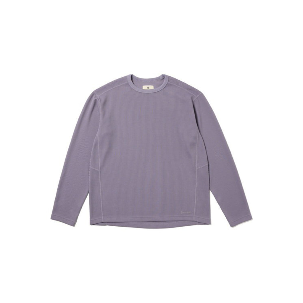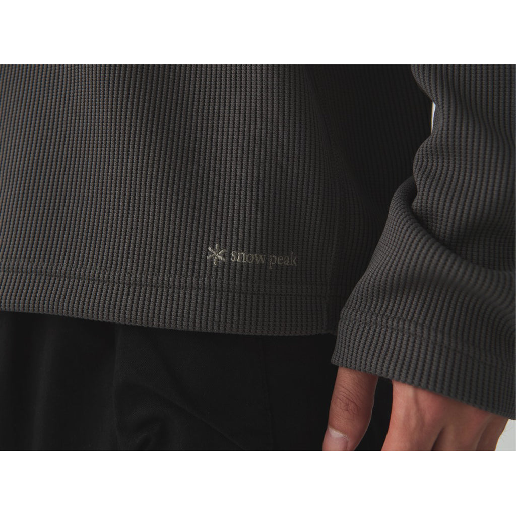 生地は両面ワッフルではなく、裏面のみフラットにすることでソフトな肌ざわりを実現。これにより生地が肌に直接触れる面積が多くなり、素早く汗を吸い上げて表面のワッフル組織に水分を拡散。優れた吸水速乾性を発揮します。