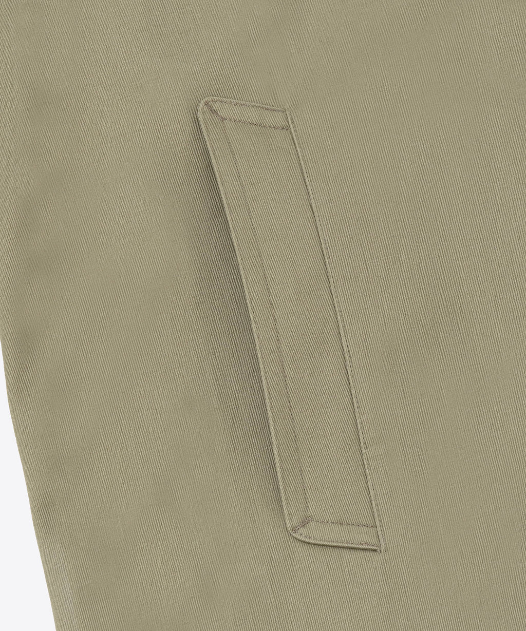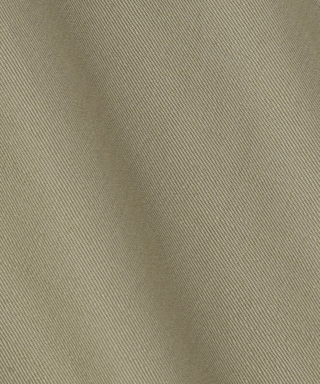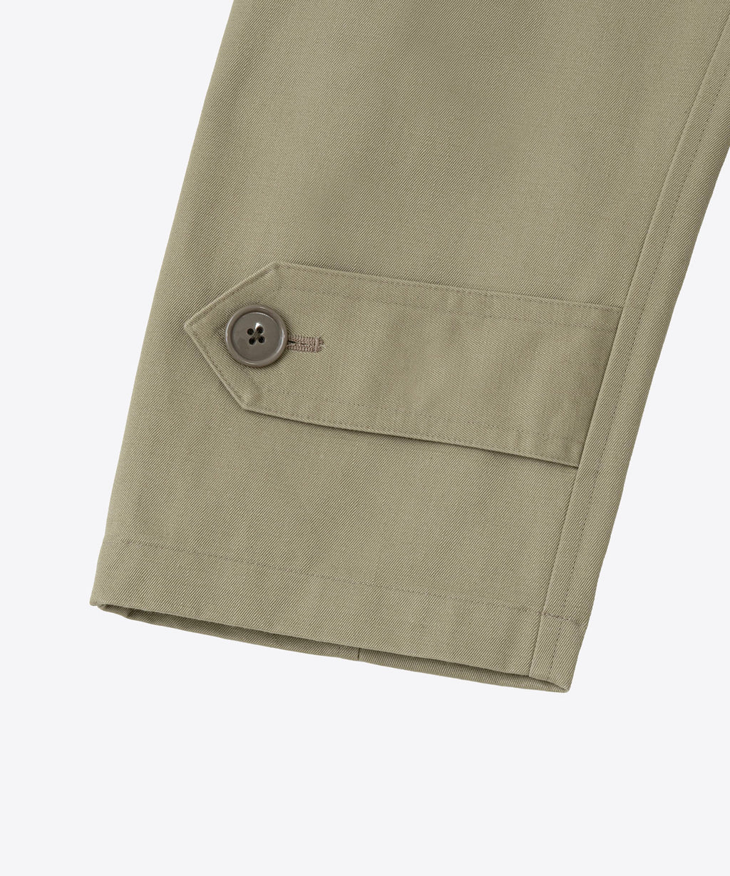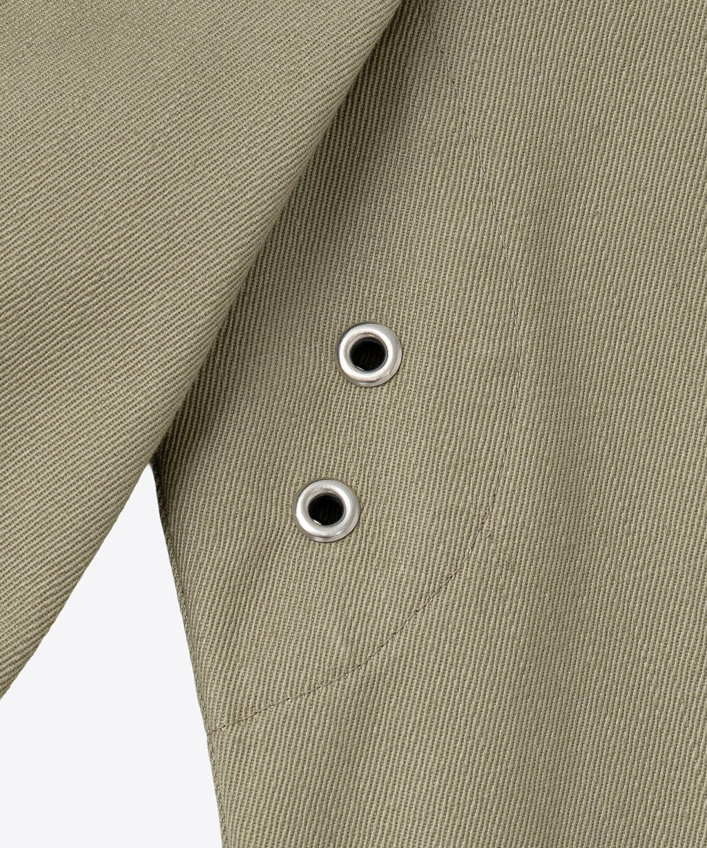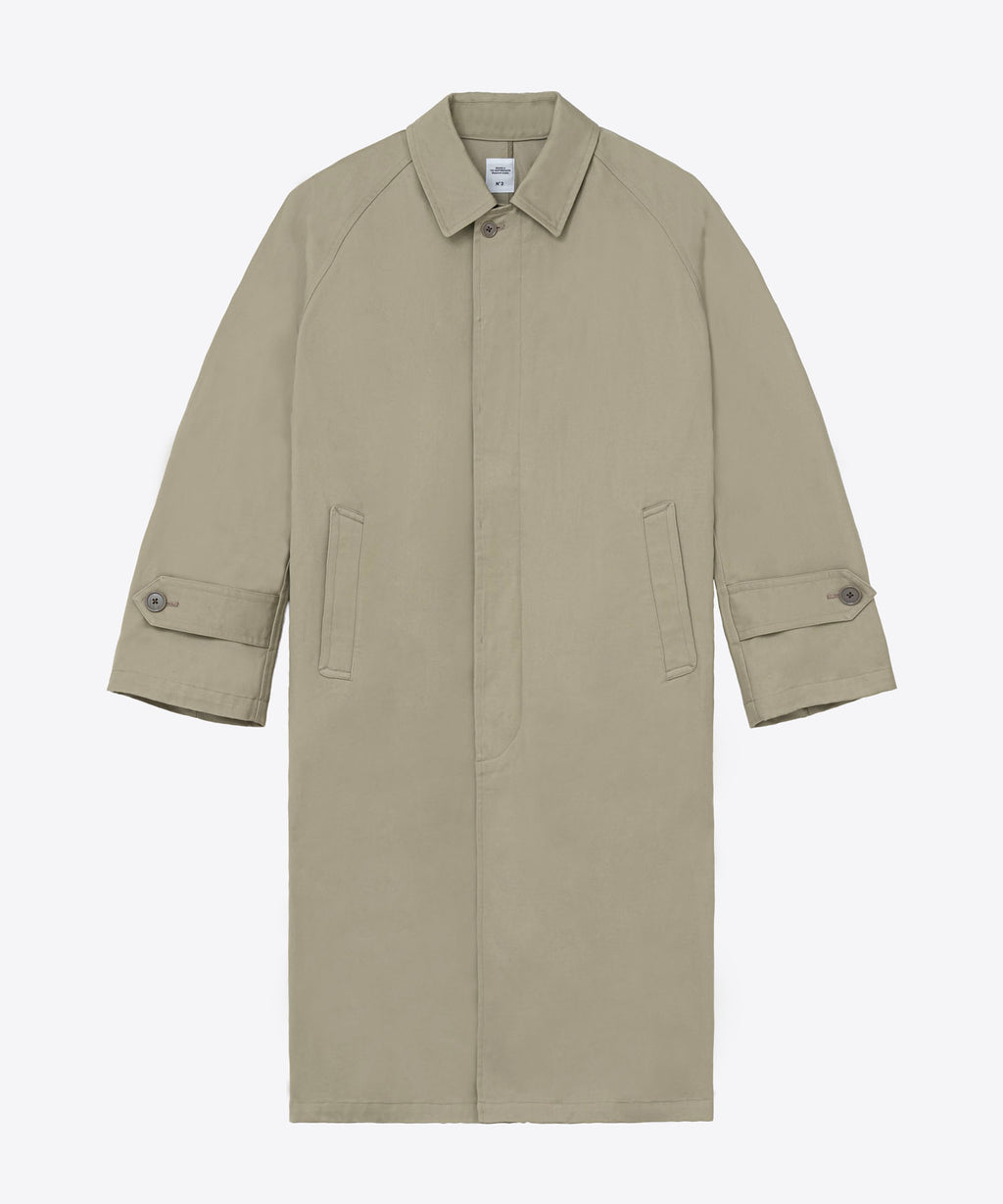 1940年代初期の米軍タンカージャケットに使用をされていたようなツイル生地を採用。特殊な染めを施すことで洗濯堅牢度がよく、摩擦によって色が少しずつ落ちていくので、より長くエイジング感を感じられる汎用性の高いシンプルなコートに仕上げている。センターベントに配置した共地ループタブが特徴。身幅、袖幅を少し大きくとったビッグシルエット。