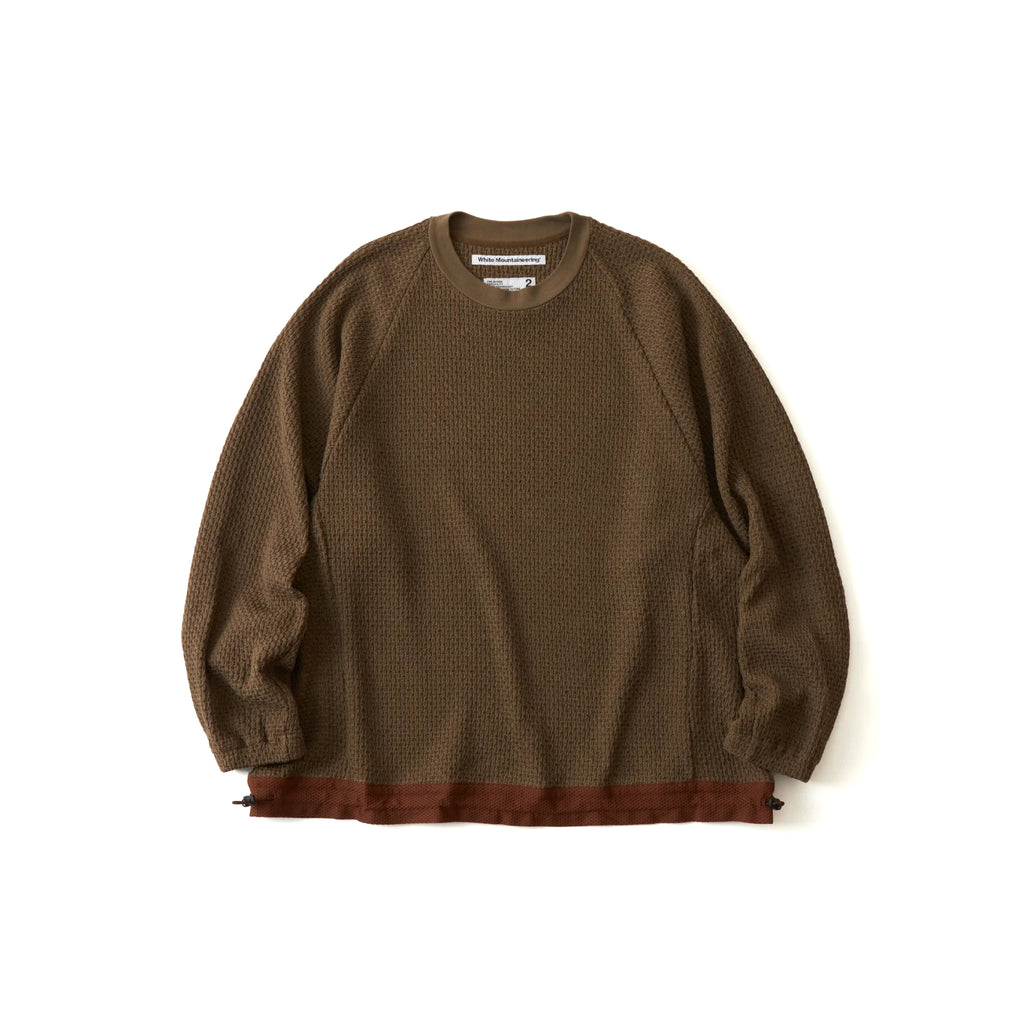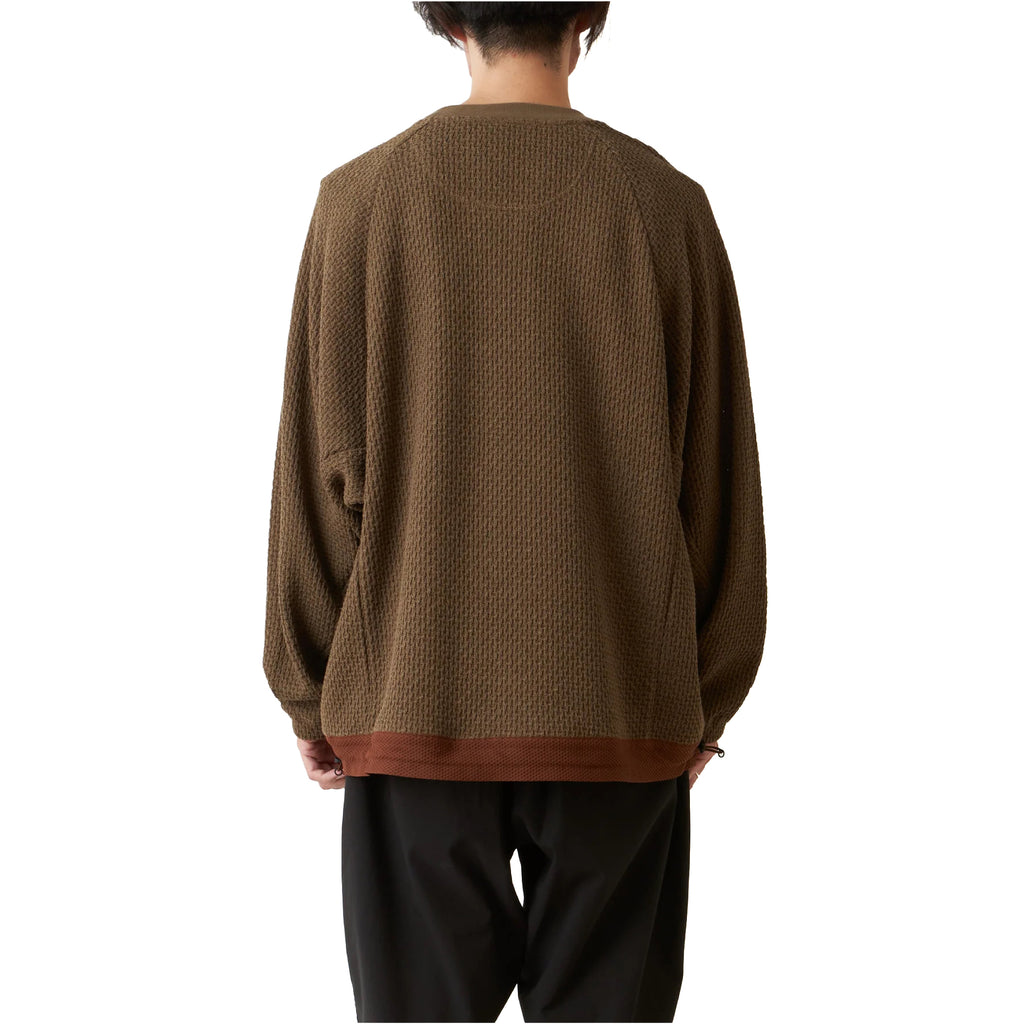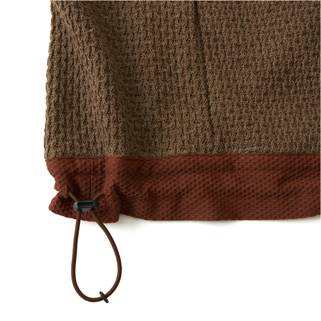 ・太番手コットン、ポリエステルを交編させて編んだローゲージニット。