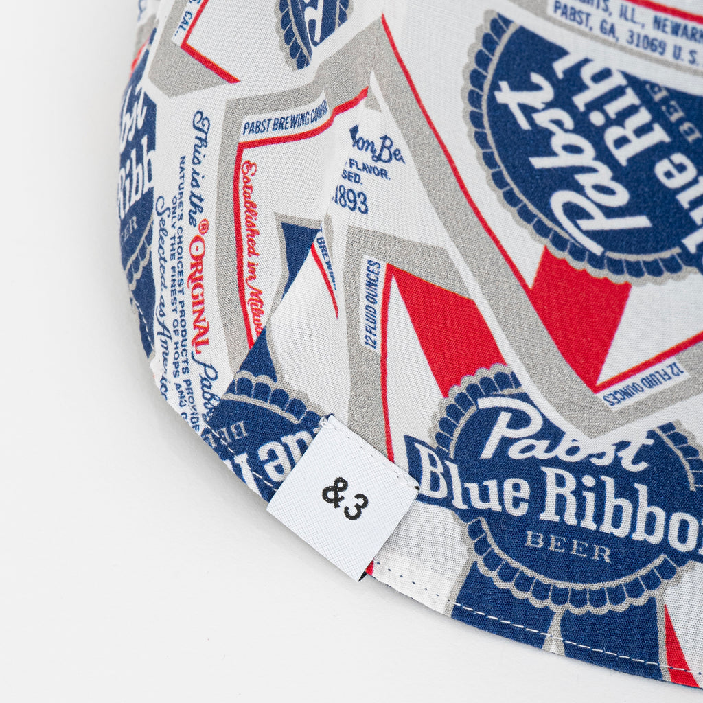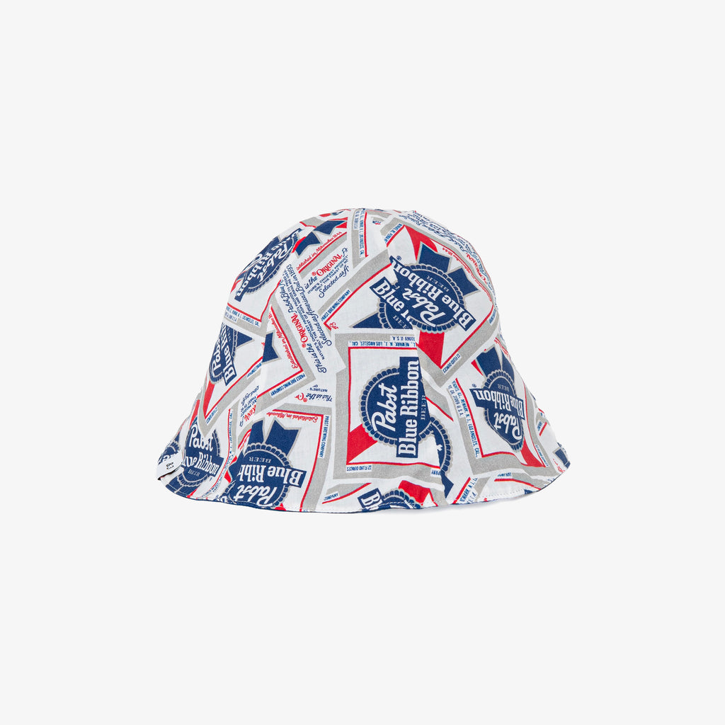 BEDWINでは初となるTULIP HAT。アメリカでトップ5の生産数を誇る実績を築きながらも、大手メーカーの傘下に入ることなくインディペンデントな運営を貫き、トラディショナルなビール醸造による安価で飲みやすいラガーを追求しアメリカの “大衆のビール”としての地位を確立した歴史の深いビアメーカとのコラボレーション。『Pabst Blue Ribbon』のアイコニックなロゴをコラージュした綿レーヨン素材を採用。頭周りNo.0(58cm)のフリーサイズ。