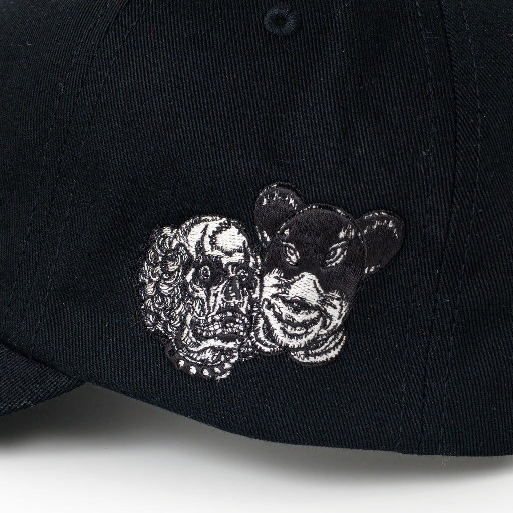 コットン素材、ロークラウン型のダッドキャップ。フロントパネルにWAY OF LIFEロゴ、左側面にRATマンとデッドマンのクロスオーバーした2FACEグラフィックを直刺繍で表現したデザイン。後部中央にバックル付きアジャスターを付属、サイズ調整が可能。1色1サイズ展開。ハードコアバンド<九狼吽 (CROW)>のボーカリストとしても活動するMUNE氏が手掛けるアパレルブランド<GENT>とのコラボレーションモデル。