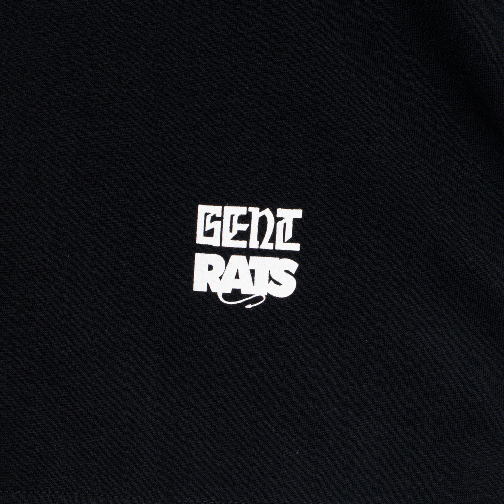 7.0oz、ドライタッチなコットン天竺素材を使用したGOAT製ボディのショートスリーブTシャツ。フロントにRATマンとデッドマンのクロスオーバーした2FACEグラフィックをラバープリントで表現したデザイン。背面右脇にRatモチーフのワンポイント刺繍。着丈やや短め、身幅にゆとりのあるシルエット。2色4サイズ展開。ハードコアバンド<九狼吽 (CROW)>のボーカリストとしても活動するMUNE氏が手掛けるアパレルブランド<GENT>とのコラボレーションモデル。