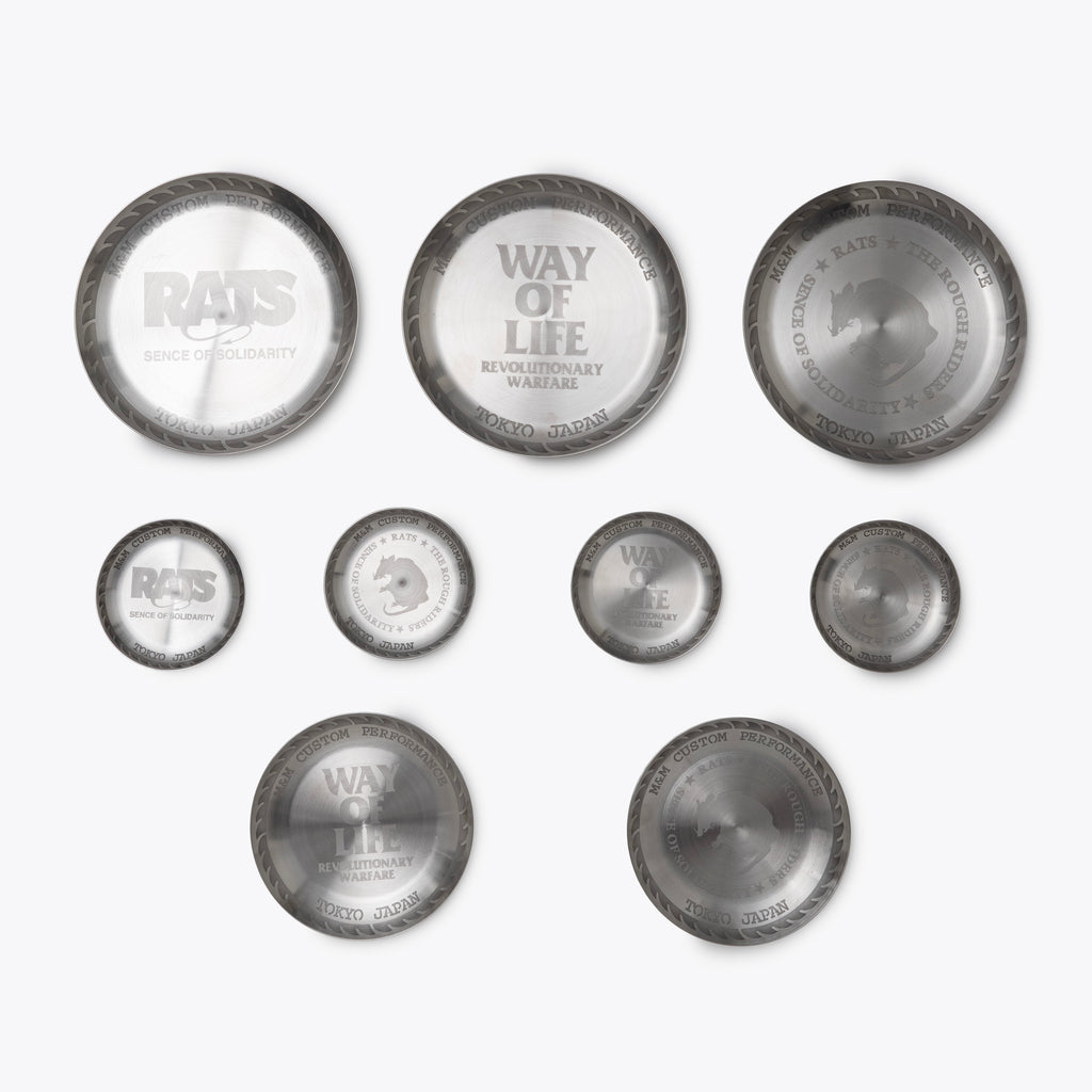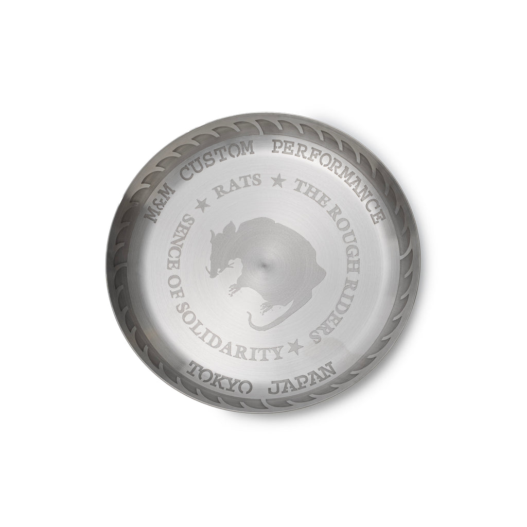 ステンレス素材を使用したM&M定番のメタルソーサー。底面デザインはRatモチーフ、WAY OF LIFE、RATSボックス型ロゴの3種類、サイズもS/M/Lの3サイズで展開するので、用途に応じた使い分けが可能。1色1サイズ展開。<M&M CUSTOM PERFORMANCE>とのコラボレーションモデル。